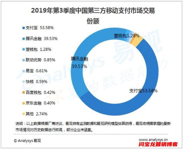 2019 年 Q3,支付寶、財(cái)富通(含微信支付)占據(jù)了中國移動支付市場的 93.11%,分列一、二名;2020 年 Q3,支付寶與財(cái)付通依舊穩(wěn)居一二,緊隨其后的是壹錢包等移動支付代表,而 PayPal 并未在列。